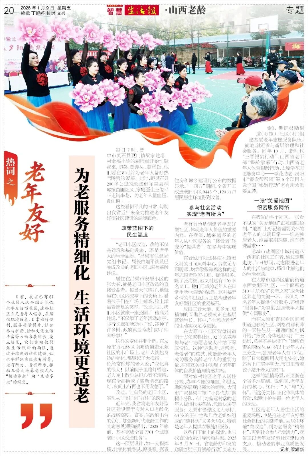 目前,我省已有87个社区入选全国示范性老年友好型社区,这些社区立足老年人需求,在居住环境改善、日常出行便利、服务质量提升、社会参与扩面、精神文化生活丰富等方面各展所长、亮点纷呈。它们突破仅聚焦生活照料的局限,通过全维度的适老建设,让老年群体实现老有所养、老有所为、老有所乐,推动三晋大地养老模式从“被动养老”向 “主动享老”的蝶变。