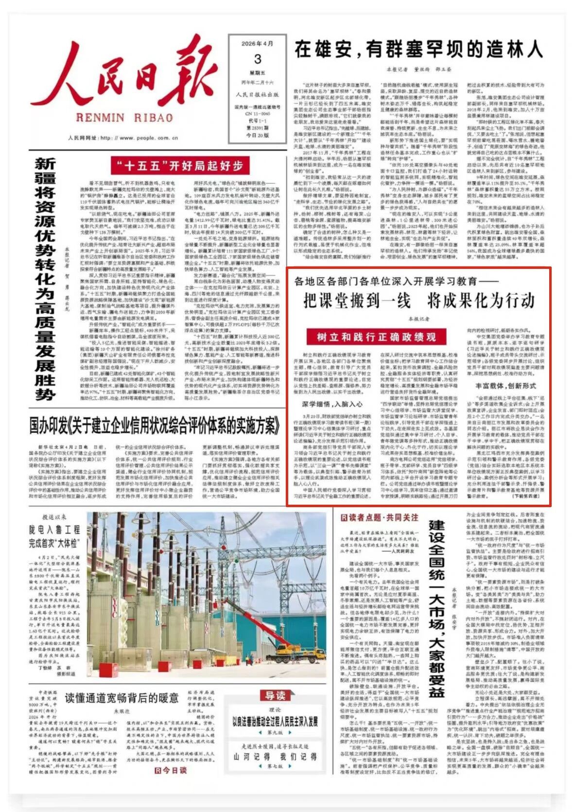 中国石油集团党组深学细悟习近平总书记关于树立和践行正确政绩观的重要论述,聚焦“建设能源强国、赋能美好生活”战略使命、紧扣2026年工作部署和“十五五”开局起步目标开展专题研讨,示范带动各级党组织用好“三会一课”、主题党日等载体,把学习课堂搬到勘探开发、炼化销售、新能源建设、工程技术服务第一线,以实干实绩检验学习成效。