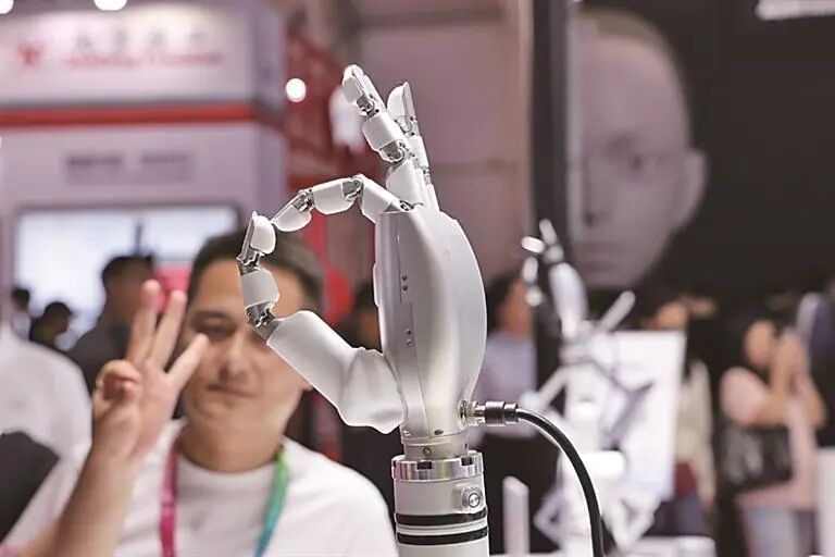 观众在2025世界机器人大会上观看一款灵巧手。新华社发