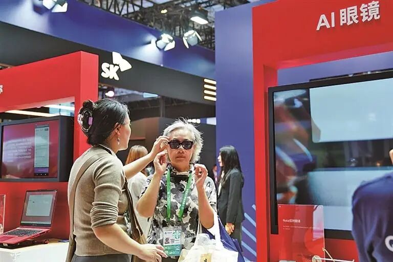 参观者在国家会展中心(上海)试戴一款ai眼镜。新华社发